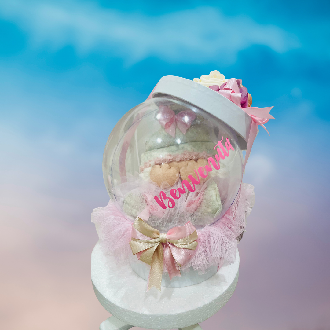 La Bolla Tullignomo racchiude al suo interno un tenero gnomo avvolto in un morbido abbraccio di tulle, fiocchi e colori delicati.