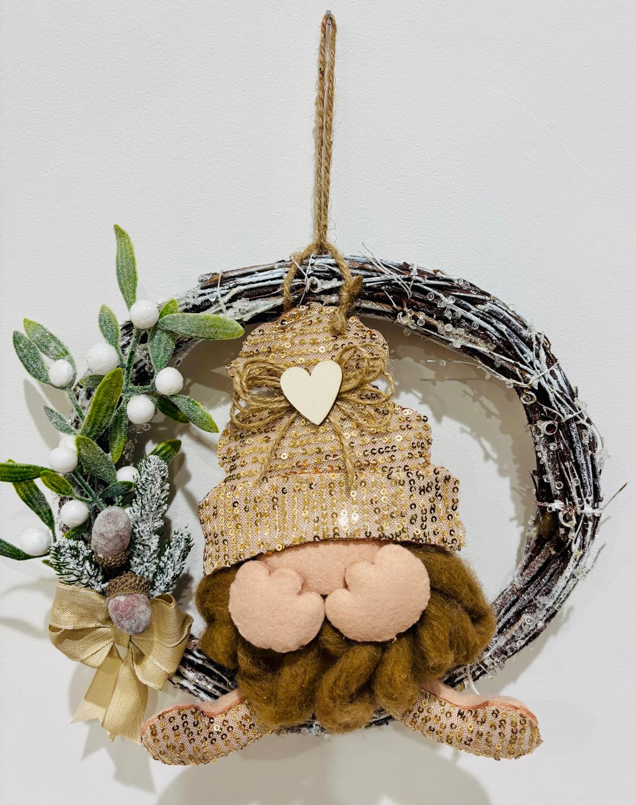 Con il suo cappello rosso brillante, la barba soffice e un cuore di legno che racchiude tutta la magia del Natale, lo Gnomo Fuoriporta è pronto ad accogliere i tuoi ospiti con dolcezza e allegria.